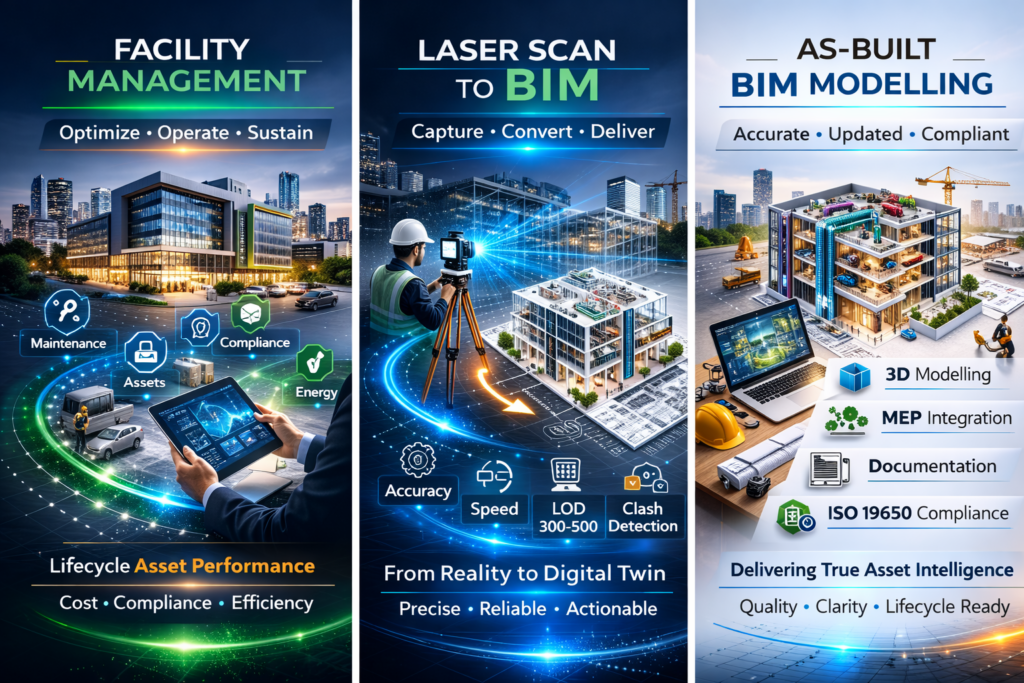 - Asset-Focused BIM Authoring: Development of accurate as-built models using platforms such as Autodesk Revit, structured to support Asset Information Model (AIM) readiness.